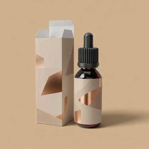 Eco Friendly logotipo personalizado doble cara impresión Tuck Top cajas de cosméticos 30ml vidrio aceite esencial cuentagotas botella caja de papel de embalaje